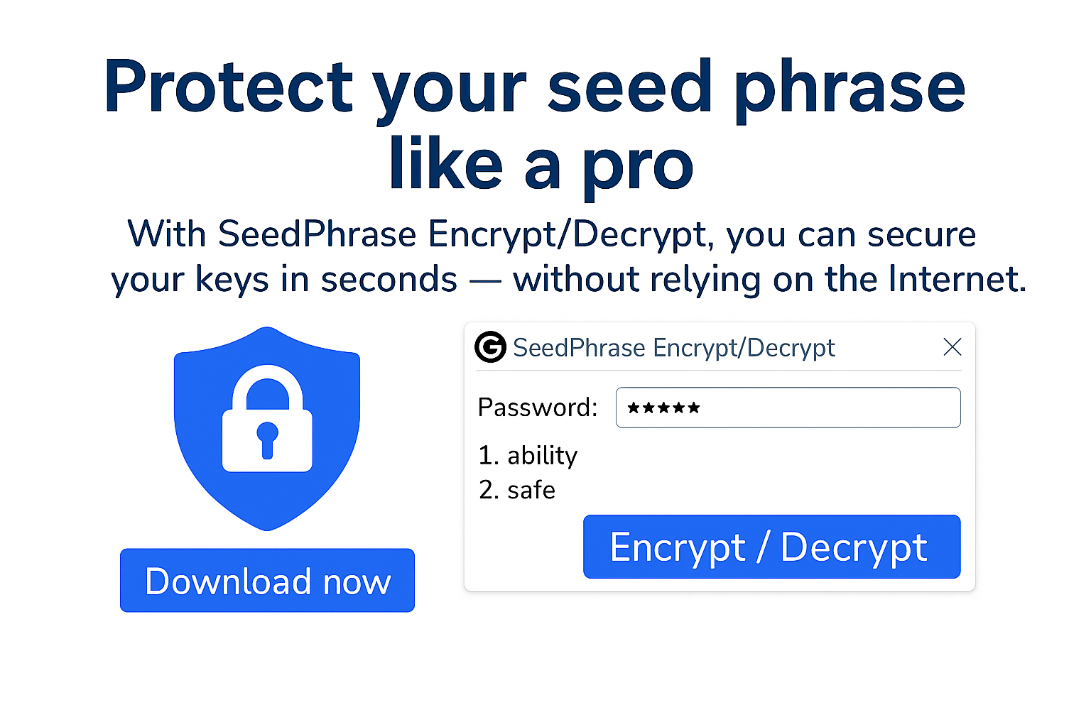 Développée avec des technologies fiables, elle vous permet de protéger, chiffrer et organiser vos phrases de récupération en toute autonomie.